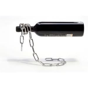 Penyangga botol wine ini sungguh mengagumkan. Ilusi ini menunjukkan seakan-akan botol wine itu melayang dan terikat oleh rantai yang menjuntai ke atas. Terbuat dari rantai pilihan yang di las dan didesain cerdik sedemikian rupa sehingga menghasilkan keseimbangan sempurna, cocok disebut sebut sebagai sebuah karya seni mengagumkan untuk hiasan di meja agan.