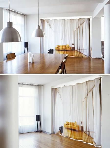 Dirancang oleh Bauke Knottnerus. Tirai ini dapat menciptakan ilusi agar kita memiliki lebih banyak ruang di setiap kamar. Banyak orang telah terinspirasi oleh desain ini dan sebagian dari mereka mengembangkannya menjadi sesuatu yang lebih kreatif. Cocok buat kita yang punya kamar kecil gan . .