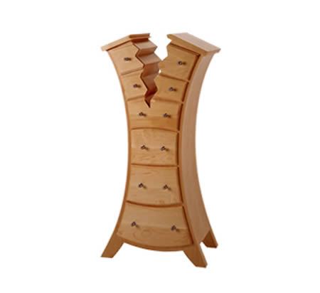 Apa agan-agan bisa melihat lemari retak ini ? Inilah efek ilusi lemari retak yang sangat kreatif dan merupakan furniture yang diproduksi eksklusif serta terbatas. Walaupun bagian atas lemari ini terlihat retak, namun kita tidak perlu khawatir sebab bagian tersebut masih tetap fungsional.